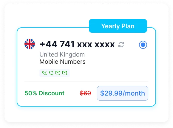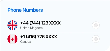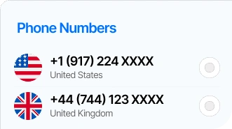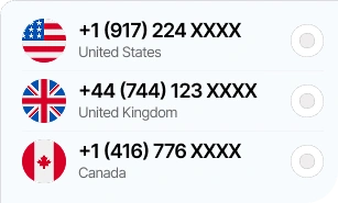You can easily acquire a number through our app or web by selecting the desired country and type of number.